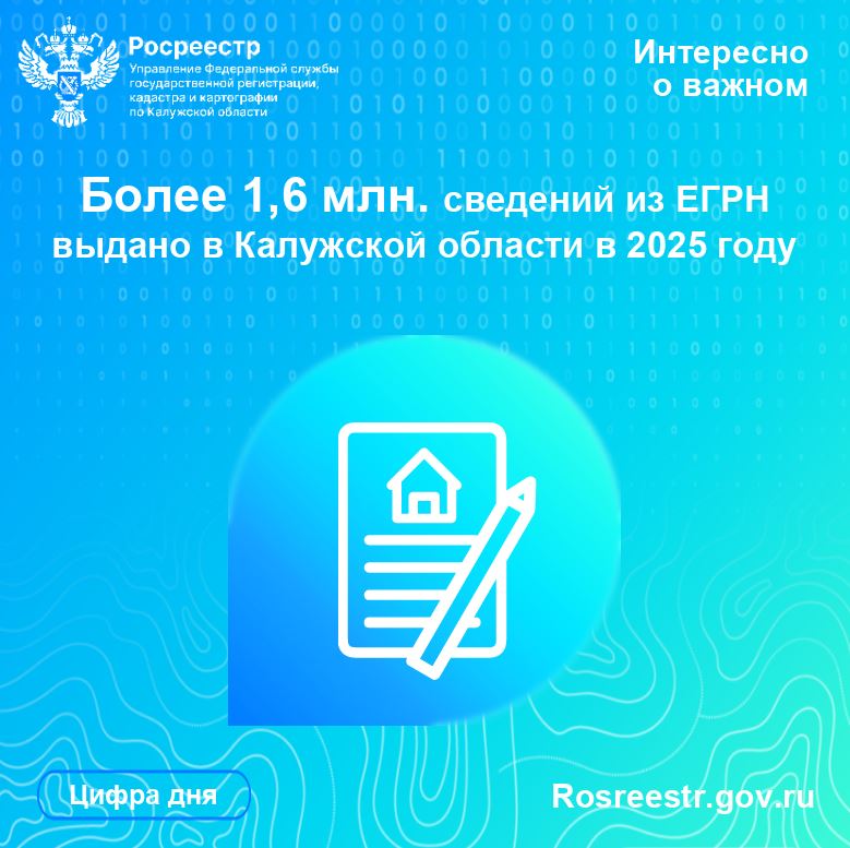 В 2025 году филиалом ППК «Роскадастр» по Калужской области предоставлено физическим, юридическим лицам и органам власти свыше 1,6 млн. сведений из Единого государственного реестра недвижимости (ЕГРН).